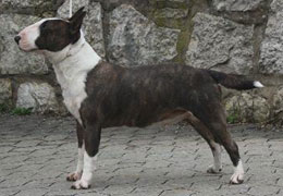 | Plemeno: | miniaturní bulteriér | Barva srsti: | žíhaná, bílé znaky, krátká |