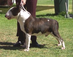 | Plemeno: | bulteriér | Barva srsti: | žíhaná, bílé znaky, krátká |