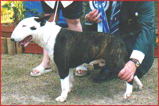 | Plemeno: | bulteriér | Barva srsti: | žíhaná, bílé znaky, krátká |