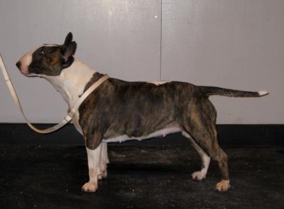 | Plemeno: | bulteriér | Barva srsti: | žíhaná, bílé znaky, krátká |