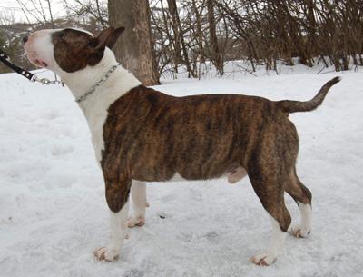 | Plemeno: | bulteriér | Barva srsti: | žíhaná, bílé znaky, krátká |