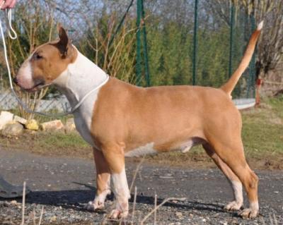 | Plemeno: | bulteriér | Barva srsti: | červená, bílé znaky, krátká |