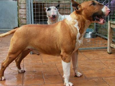 | Plemeno: | bulteriér | Barva srsti: | červená, bílé znaky, krátká |