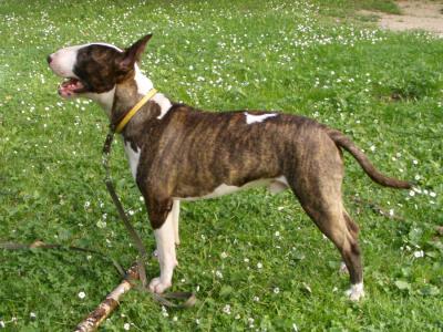 | Plemeno: | bulteriér | Barva srsti: | žíhaná, bílé znaky, krátká |