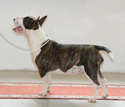 | Siradella's J'NEALA bulteriér, žíhaná, bílé znaky | Turkshead SARACEN OF KILACABAR bulteriér, žíhaná, bílé znaky | |