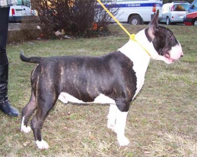 | Plemeno: | bulteriér | Barva srsti: | žíhaná, bílé znaky, krátká |
