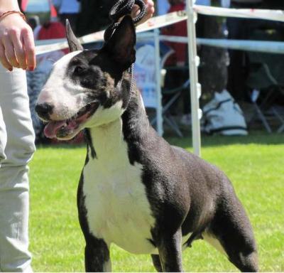 | Plemeno: | bulteriér | Barva srsti: | černá s žíháním, bílé znaky, krátká |