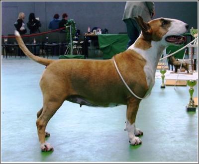 | Plemeno: | bulteriér | Barva srsti: | červená, bílé znaky, krátká |