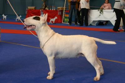 | Plemeno: | bulteriér | Barva srsti: | bílá se znakem/znaky, krátká |