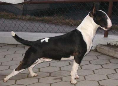 | Plemeno: | bulteriér | Barva srsti: | černá s žíháním, bílé znaky, krátká |