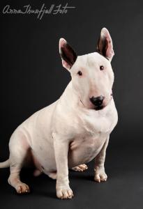 | Lejongapets BUSIGA-HILMA bulteriér, bílá se znakem/znaky | Bodils RÖDE MAGIKER bulteriér, červená, bílé znaky | |