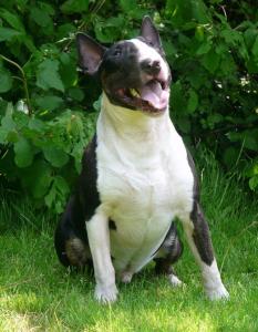 | Plemeno: | bulteriér | Barva srsti: | černá s žíháním, bílé znaky, krátká |