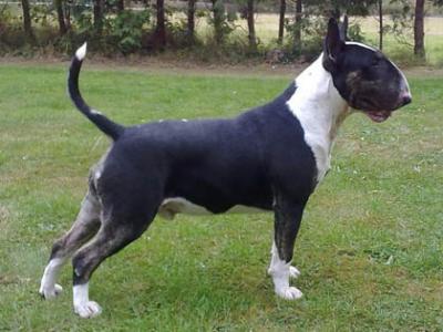 | MINFFORDD EMERALD ISLE of Kilacabar bulteriér, bílá se znakem/znaky | Cwmdulais FLASH HARRY bulteriér, bílá se znakem/znaky | |