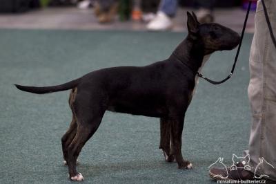 | Plemeno: | bulteriér | Barva srsti: | černá s žíháním, bílé znaky, krátká |