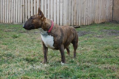 | Plemeno: | bulteriér | Barva srsti: | žíhaná, bílé znaky, krátká |
