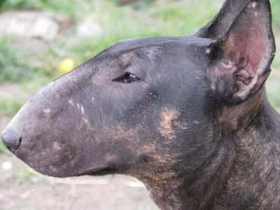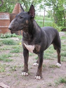 | Plemeno: | bulteriér | Barva srsti: | černá s žíháním, bílé znaky, krátká |