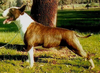 | Plemeno: | bulteriér | Barva srsti: | žíhaná, bílé znaky, krátká |