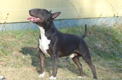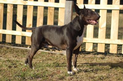 | Plemeno: | bulteriér | Barva srsti: | černá s žíháním, bílé znaky, krátká |