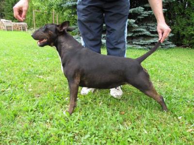 | Plemeno: | bulteriér | Barva srsti: | černá s žíháním, bílé znaky, krátká |