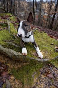 | Bikató-Parti MIA miniaturní bulteriér, trikolor | Bikató-Parti SILVER miniaturní bulteriér, trikolor, bílé znaky, 35 cm | |