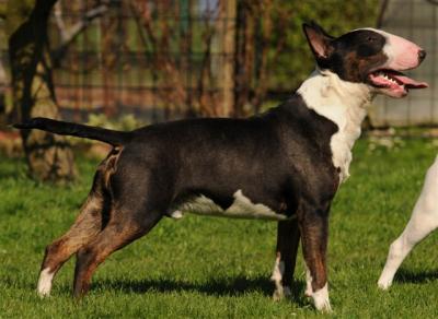 | Plemeno: | bulteriér | Barva srsti: | černá s žíháním, bílé znaky, krátká |