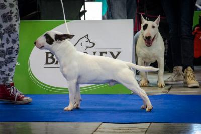 | Plemeno: | miniaturní bulteriér | Barva srsti: | bílá se znakem/znaky, krátká |
