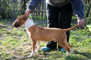 | Plemeno: | miniaturní bulteriér | Barva srsti: | červená, bílé znaky, krátká |