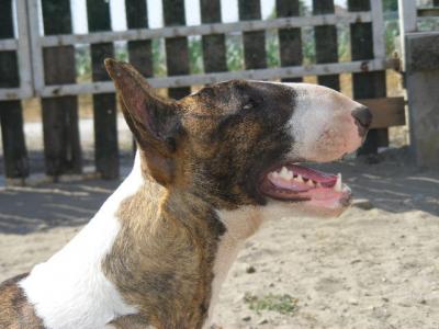 | Plemeno: | bulteriér | Barva srsti: | žíhaná, bílé znaky, krátká |