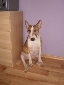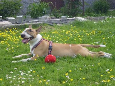 | Plemeno: | bulteriér | Barva srsti: | červená, bílé znaky, krátká |