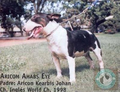 | Aricon NAKED EYE bulteriér | Ceilteach EYE OWE YOU at Aricon bulteriér | Aricon ONE IN THE EYE bulteriér, bílá se znakem/znaky |