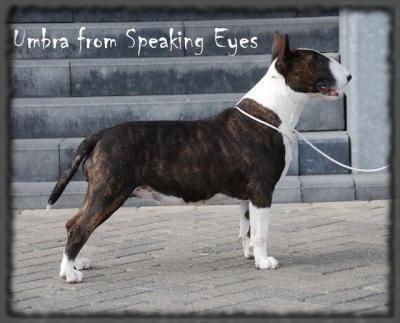 | Hillcairn JASMINE of Terjo's bulteriér, bílá se znakem/znaky | ||