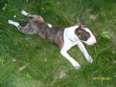 | Plemeno: | bulteriér | Barva srsti: | žíhaná, bílé znaky, krátká |
