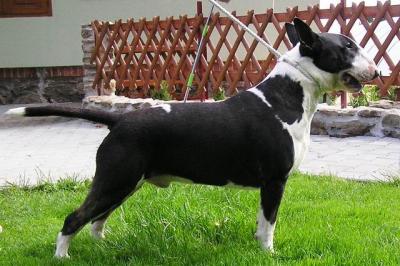 | Plemeno: | bulteriér | Barva srsti: | černá s žíháním, bílé znaky, krátká |