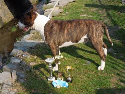 | Plemeno: | bulteriér | Barva srsti: | žíhaná, bílé znaky, krátká |
