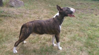 | Plemeno: | bulteriér | Barva srsti: | žíhaná, bílé znaky, krátká |