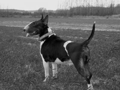 | Plemeno: | bulteriér | Barva srsti: | černá s žíháním, bílé znaky, krátká |