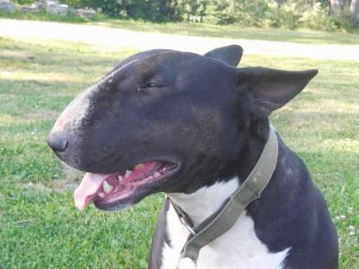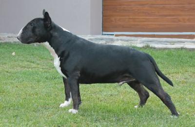 | Plemeno: | bulteriér | Barva srsti: | černá s žíháním, bílé znaky, krátká |