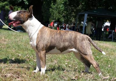 | Plemeno: | bulteriér | Barva srsti: | žíhaná, bílé znaky, krátká |