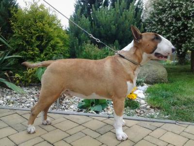 | Plemeno: | bulteriér | Barva srsti: | červená, bílé znaky, krátká |