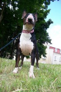 | Plemeno: | bulteriér | Barva srsti: | černá s žíháním, bílé znaky, krátká |