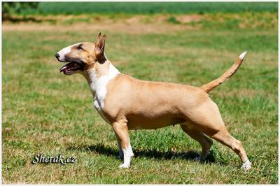 | Plemeno: | bulteriér | Barva srsti: | červená, bílé znaky, krátká |