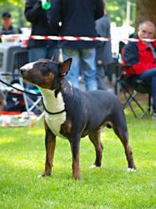 | Plemeno: | bulteriér | Barva srsti: | černá s žíháním, bílé znaky, krátká |
