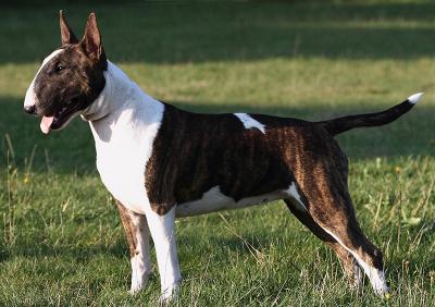 | Breed: | bull terrier | Colour of the fur: | brindle, white marks, short |