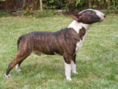 | Plemeno: | miniaturní bulteriér | Barva srsti: | žíhaná, bílé znaky, krátká |