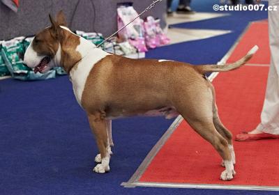 | MADRIGAL Jas-Ver bulteriér, černá s žíháním, bílé znaky | NATTY NATHAN Timar bulteriér, bílá | Cwmdulais MARSHELSEA DAI ANOTHER DAY bulteriér, bílá |