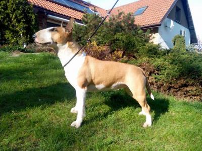 | Plemeno: | bulteriér | Barva srsti: | červená, bílé znaky, krátká |