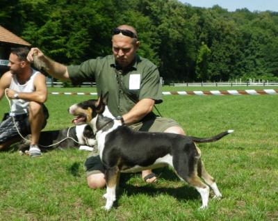 | Plemeno: | bulteriér | Barva srsti: | trikolor, bílé znaky, krátká |