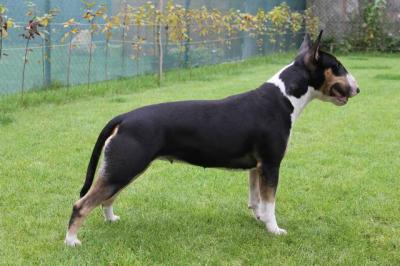 | Plemeno: | bulteriér | Barva srsti: | trikolor, bílé znaky, krátká |