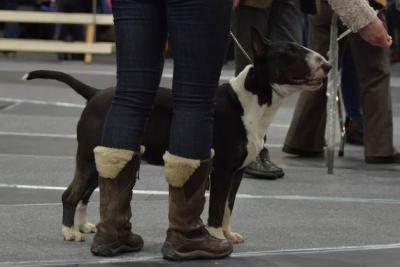 | Badlesmere BALLYHOOLIGAN bulteriér, trikolor | Corsaire CHROMEHOSS O'TEAROCK bulteriér, žíhaná, bílé znaky | Stellar's SOUTHERN CROSS bulteriér, bílá se znakem/znaky |