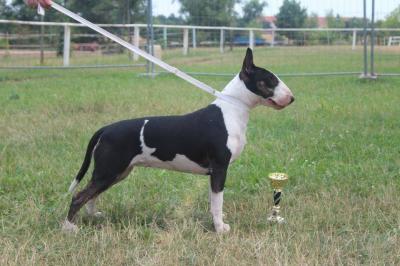 | Plemeno: | bulteriér | Barva srsti: | černá s žíháním, bílé znaky, krátká |